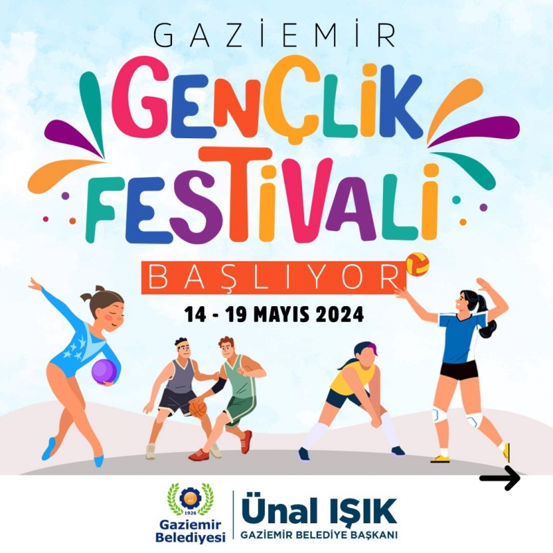 19 Mayıs Atatürk’ü Anma, Gençlik ve Spor Bayramı, Gaziemir Belediyesi’nin düzenleyeceği Gaziemir Gençlik Festivali’yle büyük bir coşkuyla kutlanacak. 14-19 Mayıs tarihlerinde yapılacak festival kapsamında düzenlenecek spor müsabakalarında, belediyenin kursiyerleri yeteneklerini sergileyecek. 6 gün sürecek festival, Voleybol Turnuvası’yla başlayacak. 14-15 Mayıs’ta Ahmet Taner Kışlalı Spor Salonu’nda düzenlenecek turnuva, takımların çekişmeli maçlarına sahne olacak.