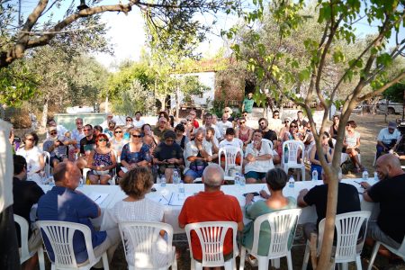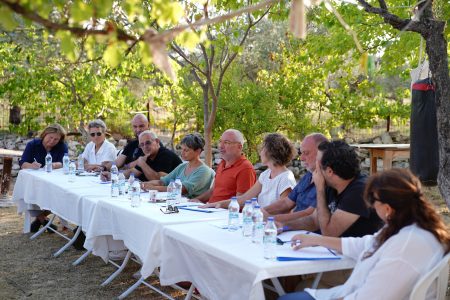Doç. Dr. Serhan Ada‘nın yönlendiriciliğini üstlendiği toplantıda; Ayvalık Uluslararası Film Festivali Direktörü Azize Tan, Mutluköy Konukevi Seçici Kurul Üyesi Defne Koryürek, Ayvalık Uluslararası Müzik Akademisi adına Eren Tapan, serbest danışman Esra Başak, zeytinyağı üreticisi Hüseyin Kesebir, zeytin ve zeytinyağı üreticisi Mustafa Kürşat, Şeytanın Kahvesi işletmecisi Suat Kaçak, çöp(m)adam projesi koordinatörü Tara Hopkins, grafiker ve ressam Tunca Subaşı ile şair Turgut Baygın yer aldı.