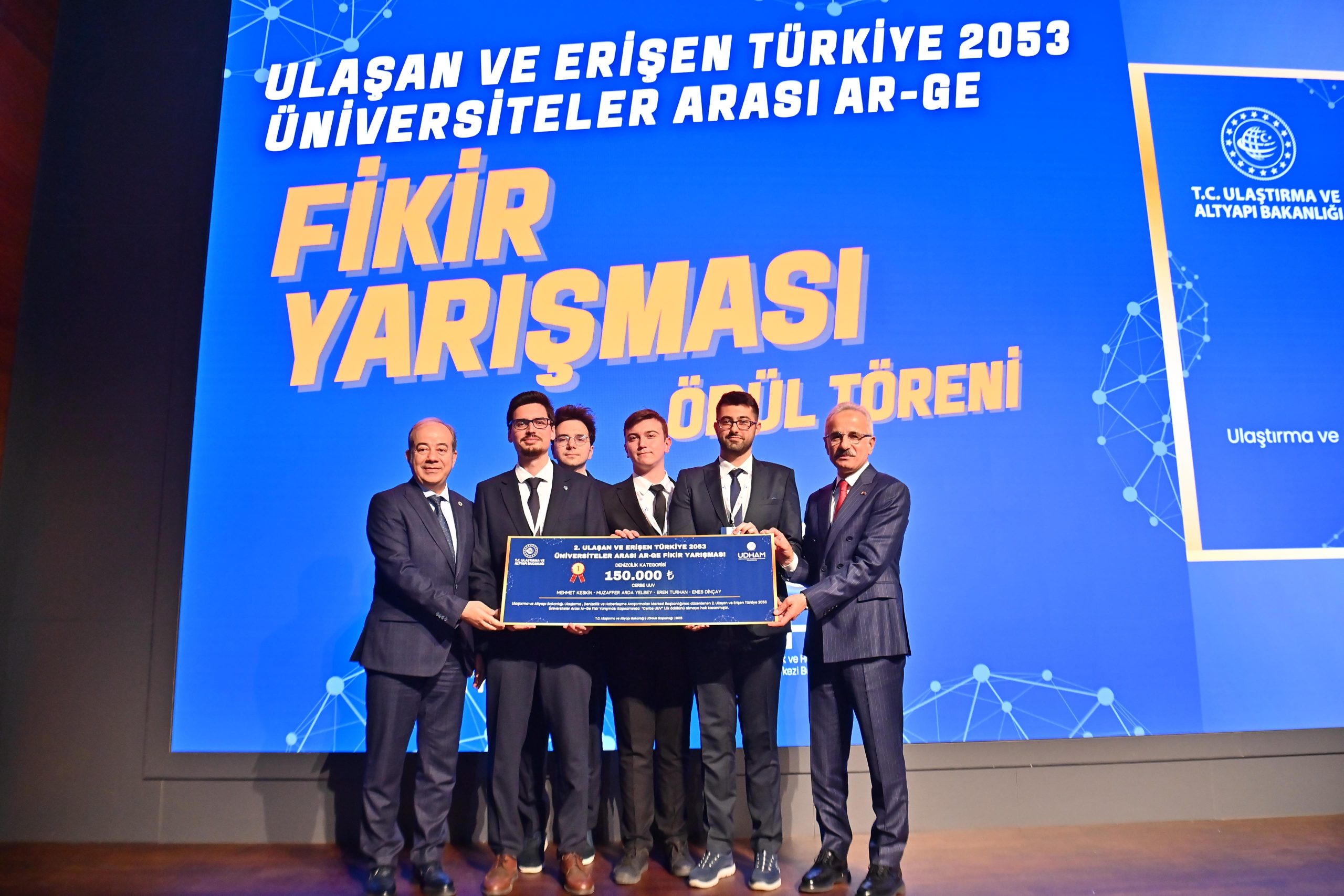 Ulaştırma ve Altyapı Bakanı Abdulkadir Uraloğlu, Ulaştırma, Denizcilik ve Haberleşme Araştırmaları Merkezinin (UDHAM) düzenlediği “Ulaşan ve Erişen Türkiye 2053 Üniversiteler Arası Ar-Ge Fikir Yarışması”nın 2. dönem ödül töreninde konuştu. Bakan Uraloğlu, “62 farklı üniversiteden, 205 gencimizin geliştirdiği 115 projeyle bu yarışmaya katılan, ödül alsın almasın emek veren her bir öğrencimizi canı gönülden tebrik ediyorum.” ifadelerini kullandı.