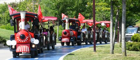 Başkan Çalık ve 30’a yakın çocuk süslenen 2 tren ile şarkılar eşliğinde Yaşam Vadisi’nde gezdi. Vadi 1. etapta bulunan Çanakkale Meydanı ve Atatürk Anıtı’ndan sefere başlayacak olan tren, 2. etabın bitiş noktasından dönerek başlangıç noktasına gelecek.