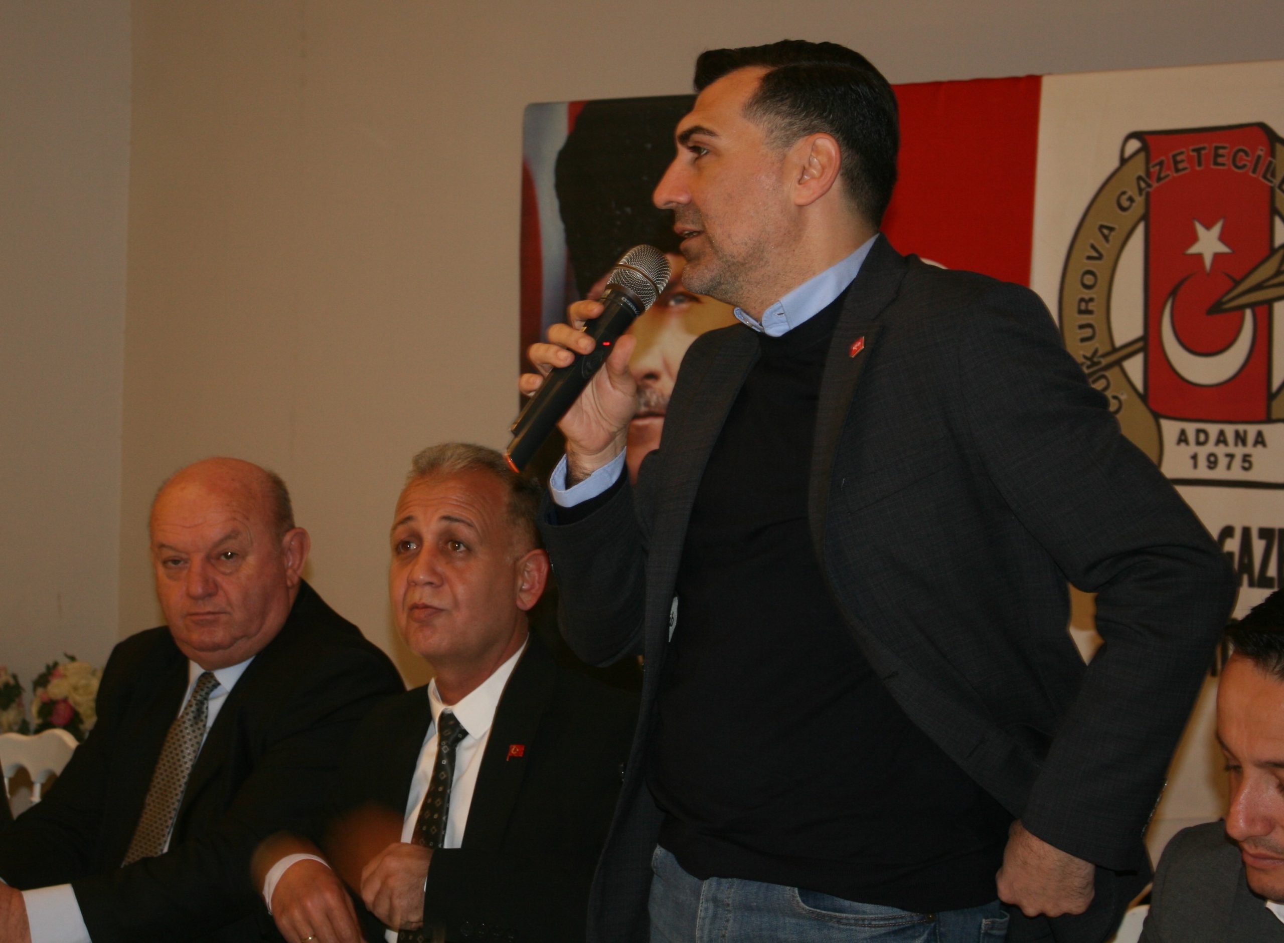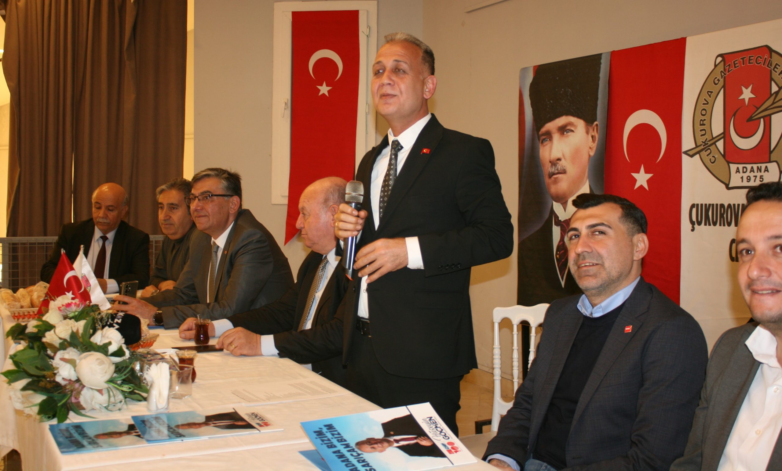 CHP Sarıçam Belediye Başkan adayı Hüseyin Göçmen’in basınla buluşup projelerini anlattığı toplantıda, CHP Adana İl Başkanı Doç. Dr. Anıl Tanburoğlu, CHP Sarıçam İlçe başkanı Av. Sercan Polat, CHP Çukurova İlçe eski başkanı Av. Remzi Ümit Atay, Çukurova Gazeteciler Cemiyeti Başkanı Cafer Esendemir eşlik ettiler.