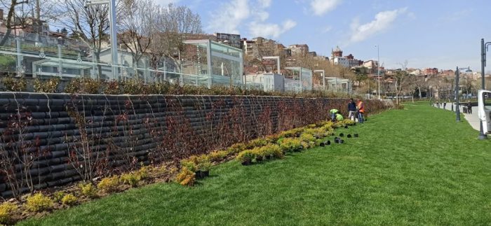 Yılbaşında halkın kullanımına açılan ve Haliç’ten de geçen T5 Eminönü – Alibeyköy Tramvay Hattı çevresinde peyzaj düzenlemesi yapan İBB, vatandaşların aktif olarak kullandığı yeşil alanları da düzenliyor. İBB Park Bahçe ve Yeşil Alanlar Daire Başkanlığı ve Yol Bakım Daire Başkanlığı’nın ortak yürüttüğü çalışmalar sonucunda Haliç’in mavisi ile yeşili buluşacak.
