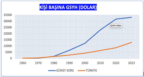 1975 yılına kadar Türkiye’de Fert Başına GSYH Güney Kore’den daha yüksek idi. İdeolojik çatışmalar, 1980 darbesi ve son olarak ta ekonomik istikrar sorunu nedeni ile ara açıldı.