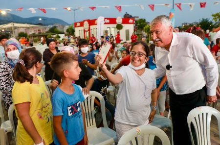 Başkan Zeydan Karalar sinema gösterimi sırasında halka kendi elleriyle ikramda bulundu.