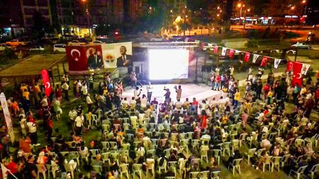 Şehit Kubilay Parkı’nda yapılan ve Kozan Belediye Başkanı Kazım Özgan, siyasiler, meclis üyeleri, muhtarlar ve Kozanlıların bulunduğu gösterime katılan Adana Büyükşehir Belediye Başkanı Zeydan Karalar, “Görevimiz Tatil” filmi öncesi halka hitap etti.