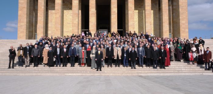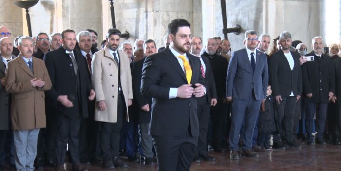 Hüseyin Baş liderliğindeki BTP heyeti, Aslanlı yoldan yürüyerek Atatürk’ün mozolesinin bulunduğu tören salonuna geldi.