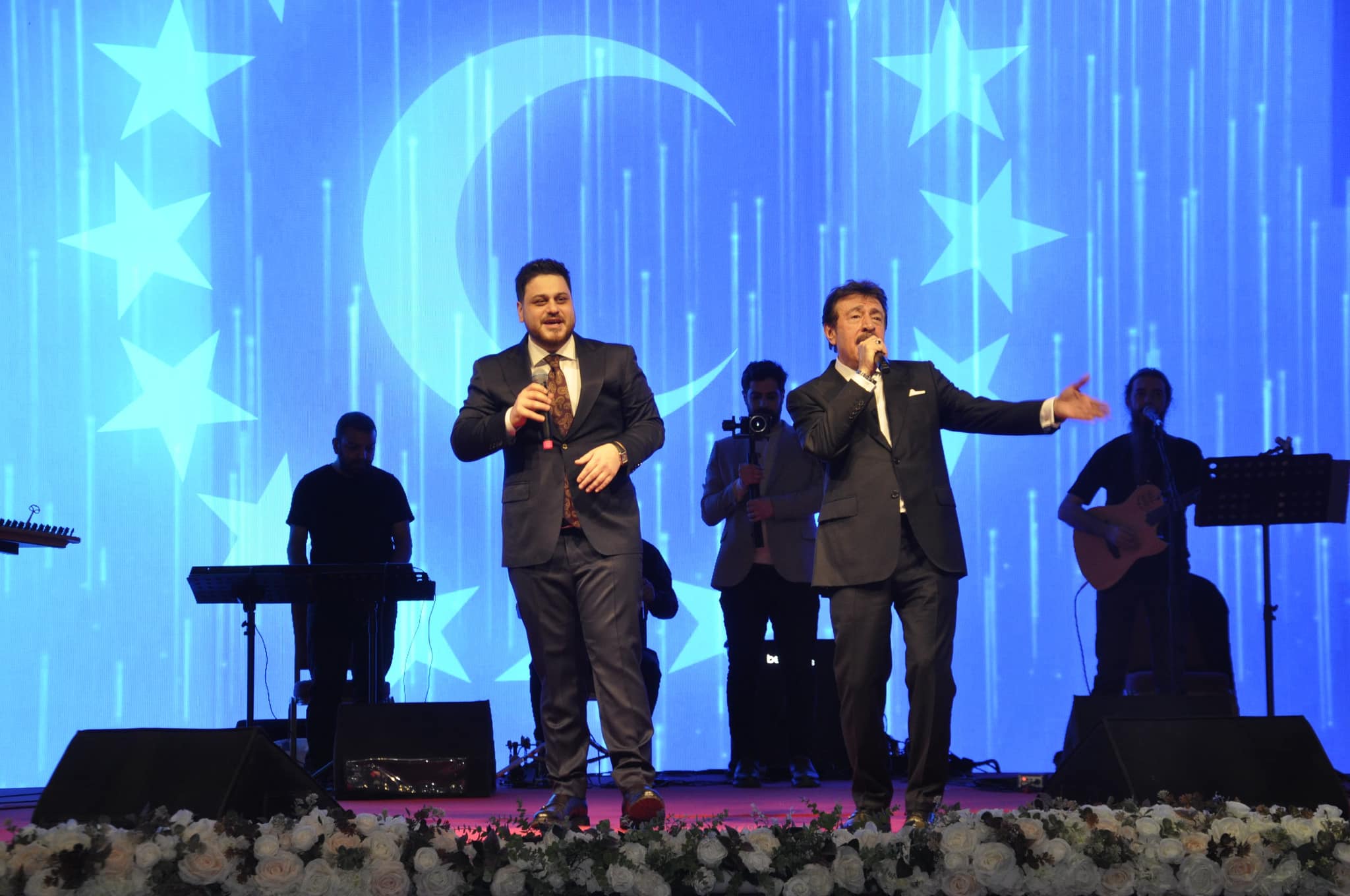 Sahneye çıkan BTP Genel Başkanı Hüseyin Baş, İlkan ile düet yaptı.