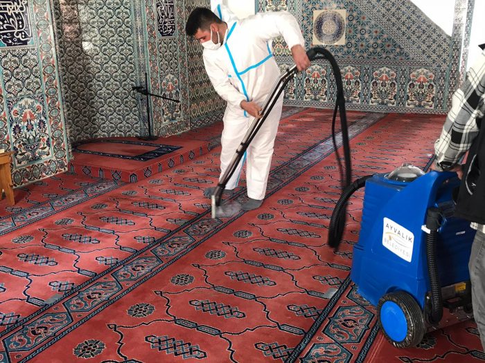 Ayvalık Belediyesi koronavirüsle mücadele  kapsamında, kent genelindeki camilerde Ramazan ayı öncesi dezenfeksiyon ve temizlik çalışmalarını tamamlayarak hijyenik koşullara uygun hale getirdi.
