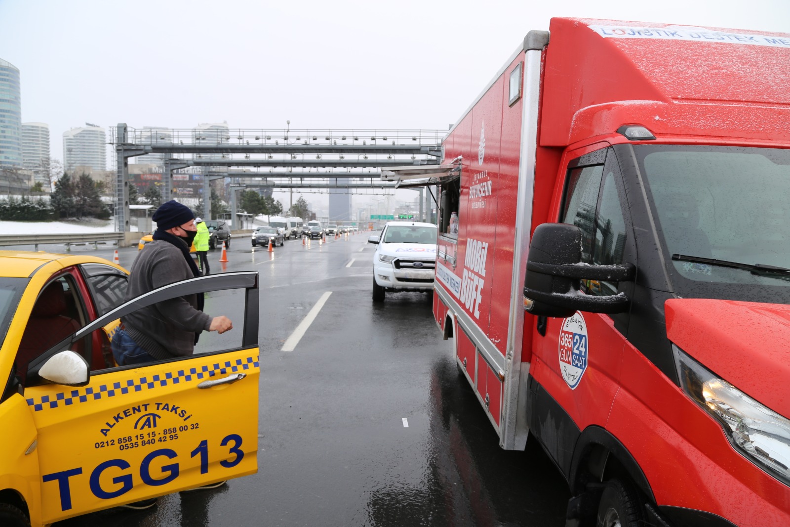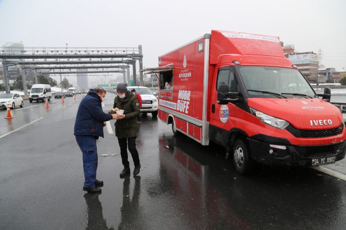 İBB Lojistik Destek Merkezi’ne ait Mobil Büfeler, kentin yoğun olan Kavacık, Mahmutbey ve Kartal gişelerine hareket etti. Mobil Büfeler, trafikte seyir halinde olan vatandaşlarımıza kumanya, çay, hazır çorba ve su hizmeti sunuyor.