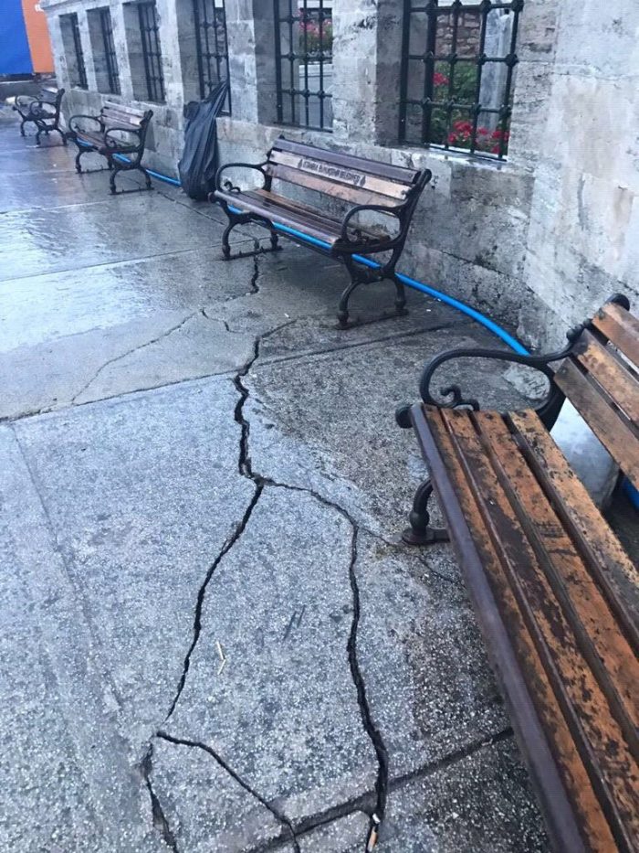 Üsküdar Şemsi Paşa Cami’nin denizle ilişkisini koparan projeyle sahilde yürüme alanı oluşturulduğunu belirten Polat, “Dolgunun toplam genişliği cami önünde 20 metreydi. Günlük 30 bin insanın gelip geçeceği bir yaya sirkülasyon alanı tarif edildi. Bu alan, caminin önünde çatlayan zeminden ötürü, 3 metreye kadar düşen bir alanda böyle bir uygulamanın yapılması riskler oluşturdu. Tarihi yapı ve tarihi doku risk altına alındı. İnsan güvenliğinin için sorunlar oluştu” dedi.