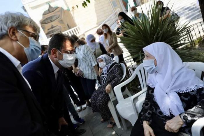 İmamoğlu cenaze namazı öncesinde, cami avlusunda bekleyen Ayşe Sancar’ın annesini de ziyaret ederek taziyede bulundu.