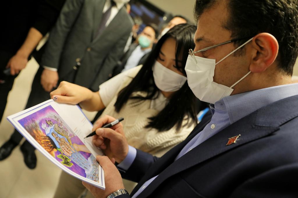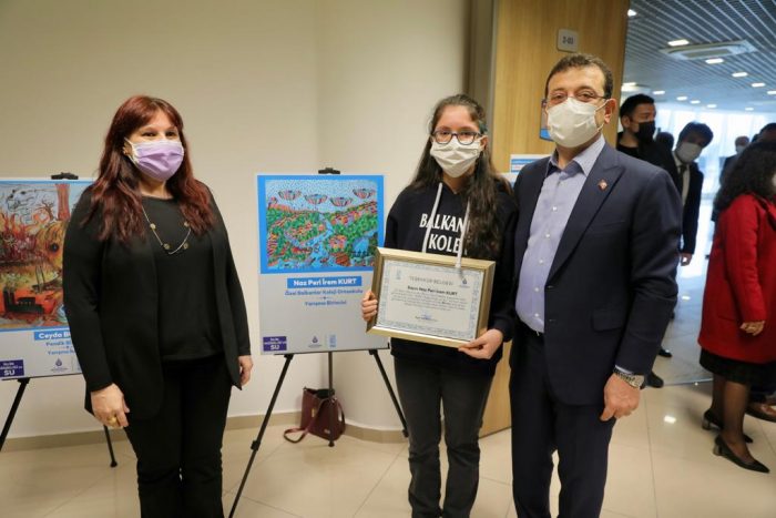 Bunun uzun soluklu bir mücadele olacağının altını çizen İmamoğlu, “Önümüzde varsa bazı engeller, tehditler, önümüze dikilen ‘mega proje’ adı altında İstanbul’un geleceğini tehdit edecek unsurlar; bunlara akılla, bilimle, hukukla, kanunla karşı durmak da sorumluluğumuzdur. Belki de dışarıda şövalyelerde dizili olan resimlerde, o karşı duruşu beraber görebiliriz. Yani hem çocuklarımızın hem gençlerimizin o tehdidi, o korkuyu hissederek onları kaleme almaları, çizmeleri, bence bu tür tehditlere karşı hem bir karşı duruş hem de aslında ne kadar duyarlı bir nesille bir arada olduğumuza bir işaret. O bakımdan, büyük işler başarmalıyız. Bu manada, bir zihniyet değişimi var etmeliyiz. Gerçekten çocuklar ve gençler, bu konuda çok daha duyarlı geliyorlar. Onlara hazırlayacağımız iyi bir çevre, iyi bir ortam, geleceği daha teminat altına almış bir şehir ve ülke yapacaktır” ifadelerini kullandı.