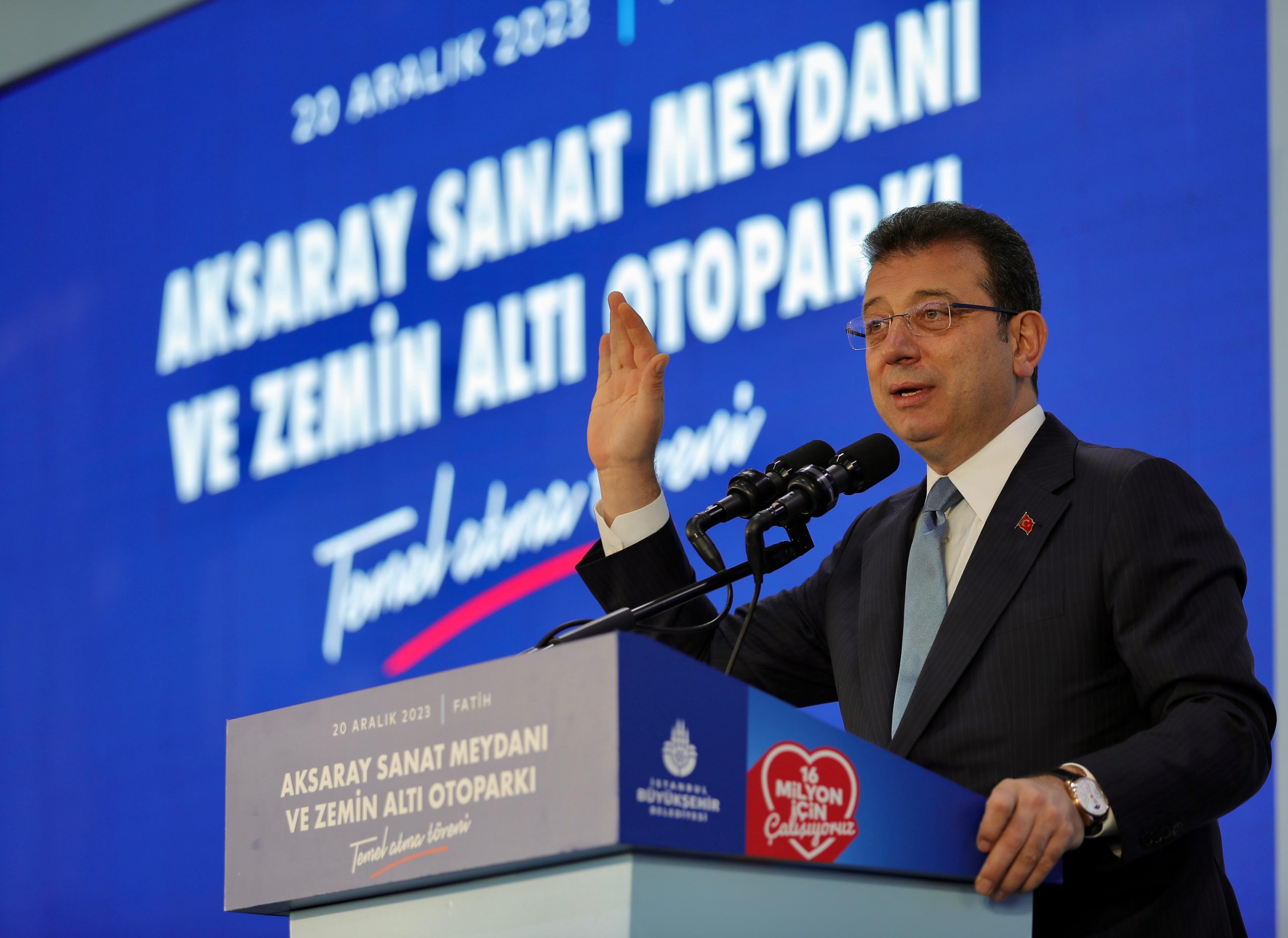 İBB Başkanı Ekrem İmamoğlu, ‘İstanbul’un kalbi’ olarak nitelediği Fatih ilçesinin Aksaray semtini yeni çehresine kavuşturacak ‘Aksaray Sanat Meydanı ve Zeminaltı Otoparkı’nın temelini attı. Temel atma töreninde konuşan İmamoğlu, “Bize yönelik eleştirilerin tamamı, büyük çoğunluğu, ne yazık ki belediyecilikle ilgisi olmayan, millete tek fayda sağlamayan, vakti geçmiş, uyduruk siyasi yakıştırmalar, geçmişten bugüne defalarca sorgulayıp sorgulayıp, evirip çevirip ortaya koydukları işler. Herhalde bu dönemin modası da İstanbul Büyükşehir Belediyesi’ne, onun Başkanı Ekrem İmamoğlu’na saldırmak. Olsun. O modayı görüyoruz. Bu modanın tutmadığını, bu modanın modası geçmiş bir iş olduğunu, 31 Mart’ta, 16 milyon İstanbullu çatır çatır gösterecek” dedi. İmamoğlu, “Biz neye güveniyoruz” sorusunu, “Başından beri söyledik: Milletimizin aklına güveniyoruz, ortak akla güveniyoruz. Onlar neye güveniyor? Bir kişinin aklına güveniyorlar. Bir kişi. Kimdir o? Bilmiyorum. Ama bir kişinin aklına güveniyorlar. Bir kişinin iki dudağın arasından çıkan söze itibar ediyorlar. Biz de diyoruz ki; biz, 16 milyon insanımıza güveniyoruz” şeklinde yanıtladı: