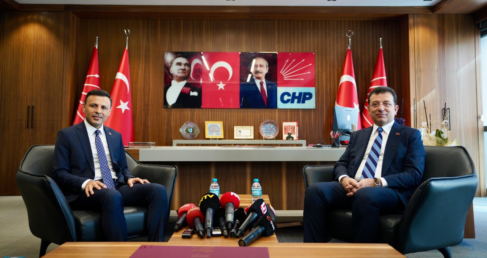 İstanbul Büyükşehir Belediye (İBB) Başkanı Ekrem İmamoğlu, Cumhuriyet Halk Partisi (CHP) İstanbul İl Başkanı Özgür Çelik’e tebrik ziyaretinde bulundu. Ziyaret, Sarıyer’deki CHP İstanbul İl Başkanlığı’nda gerçekleşti. İmamoğlu’nu makam odasında ağırlayan Çelik, ziyaretinden dolayı İBB Başkanı’na teşekkürlerini iletti. İBB ve Başkan İmamoğlu’nun, yaklaşık 4,5 yıldır devam eden görevleri boyunca, iktidar kanadından gelen engellemelere, pandemi ve ekonomik krize rağmen başarılı işlere imza attığına vurgu yapan Çelik, “Bir deprem yaşadık hepimizin yüreğini yakan. Aslında normal zamanların ötesine geçen bir süreç yürüttünüz ve bu süreci yürütürken hem gecikmeli başlamanız hem de meclis çoğunluğunun iktidar partisinde olduğu için çeşitli engellemelerle karşı karşıya kaldınız. Bu engellemelere rağmen, İstanbul’da, 4,5 yılda çok büyük hizmetler ürettiniz siz ve arkadaşlarınız Başkanım. Bunun için sonsuz ve yürekten teşekkür ediyorum” dedi.