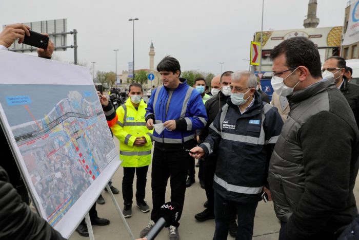 İBB Başkanı Ekrem İmamoğlu, sokağa çıkma yasağını fırsat bilip, Eminönü-Alibeyköy Tramvay Hattı ve çevresinde incelemelerde bulundu.
