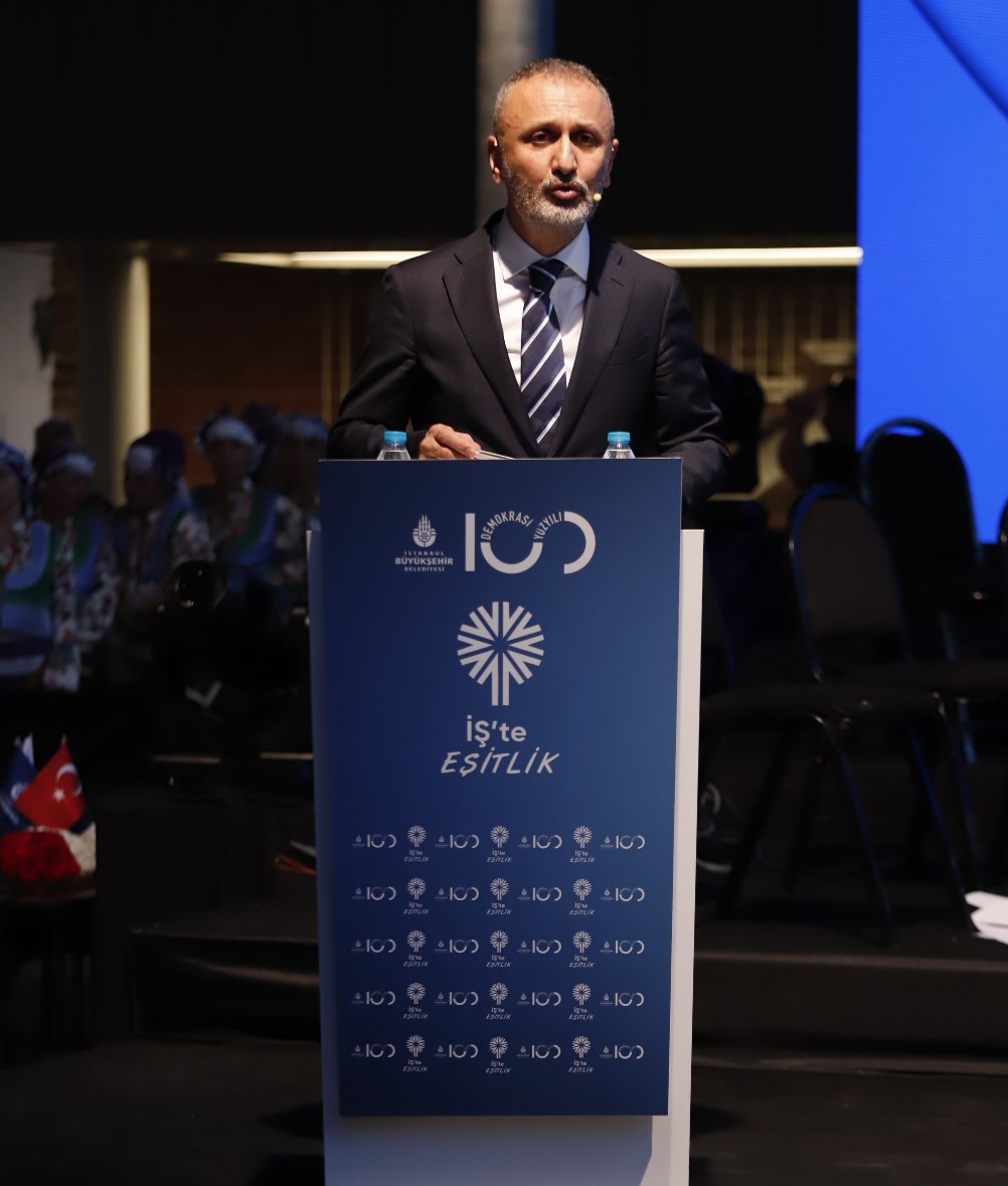 Burada konuşan İBB Başkanı Ekrem İmamoğlu, “Pazar günü Cumhuriyetimizin 100. yılını hep birlikte, büyük bir coşku içinde kutladık. Cumhuriyetin bağımsızlığımız ve özgürlüğümüzün yanı sıra bize kazandırdığı en değerli şey eşitliktir. Cumhuriyet eşit bireylerin birlik ve beraberlik içinde aklın, bilimin rehberliğinde bugünümüzü ve geleceğimizi aydınlattığı bir idealin adıdır. Cumhuriyetimizin 100. yılı kutlu olsun. Eşitliğin en değerli ve önemli parçalarından biri de toplumsal cinsiyet eşitliğidir. Çünkü çok iyi biliyoruz ki kadınların hayatın her alanında güçlü bir şekilde var olmadığı toplumlar eksik kalmaya mahkûmdur. Her açıdan gelişmiş, güçlü bir toplumun inşasında kadınların çok önemli bir rol oynayacağı şüphesiz. Cumhuriyet ile birlikte kadınlar haklarına sahip olmuş, sosyal hayatta var olabilmiş ve 100 yıl içerisinde Türkiye’ye çok faydalı eserler, çalışmalar üretmişlerdir” dedi.