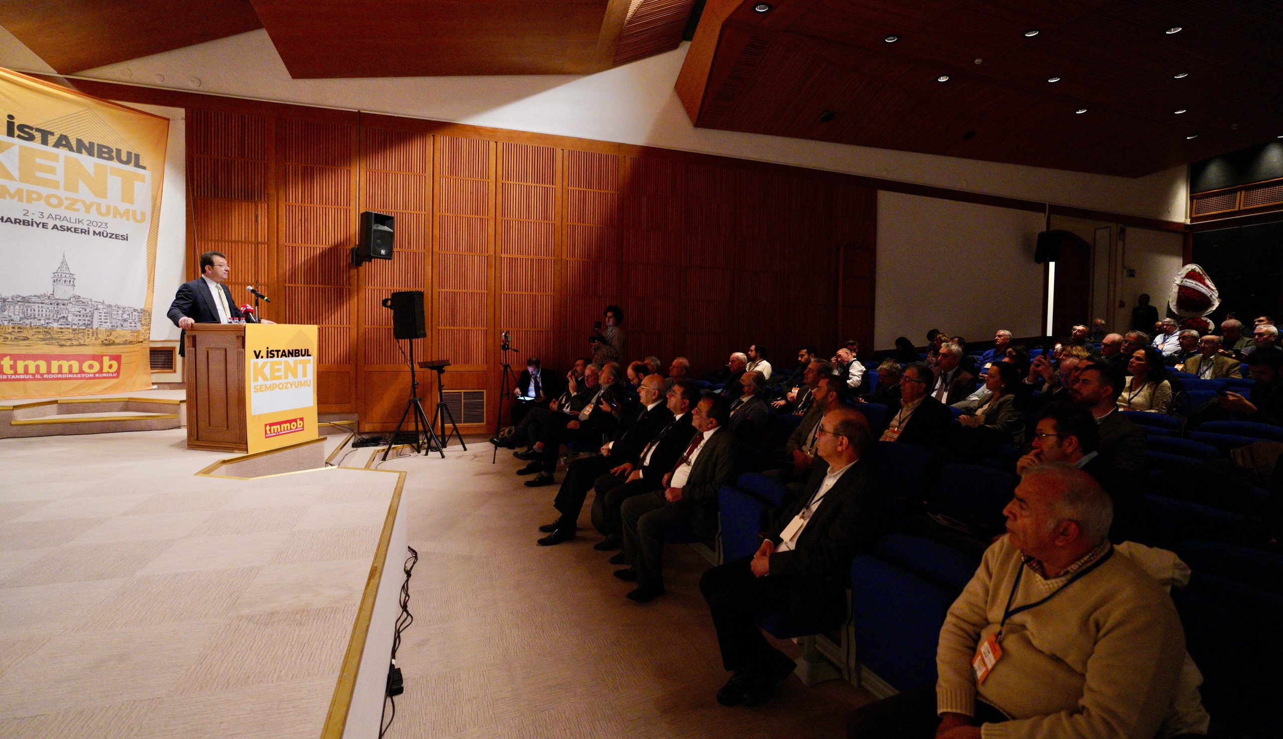İstanbul Büyükşehir Belediye (İBB) Başkanı Ekrem İmamoğlu, TMMOB İstanbul İl Koordinasyon Kurulu tarafından, ‘Kent ve Demokrasi’ temasıyla Harbiye Askeri Müzesi’nde düzenlenen ‘5. İstanbul Kent Sempozyumu’nun açılış törenine katıldı. TMMOB İstanbul İl Koordinasyon Kurulu Sekreteri Seyfettin Avcı ve Türk Mühendis ve Mimar Odaları Birliği Yönetim Kurulu Başkanı Emin Koramaz’ın ardından kürsüye çıkan İmamoğlu, konuşmasında özetle şunları söyledi:
