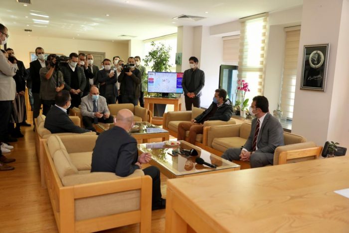 İmamoğlu, yaşanan deprem felaketi nedeniyle “Geçmiş olsun” dileğinde bulunduğu Soyer’den, “Size de geçmiş olsun” yanıtını aldı. “Bugün teknik heyetimiz ve meclis üyelerimiz, ‘Beraber gözlem yapalım’ diye bana eşlik etmek istediler” diyen İmamoğlu, depremle ilgili gelişmeleri, Kovid-19 tedavisi gördüğü hastane odasından takip ettiğini belirtti. İmamoğlu, “Allah, beterinden korusun diyoruz. Güzel bir duamızdır; ama bunları da yaşamamak lazım aslında. Rahmet diliyoruz, bütün can kayıplarımıza. Hepimizin başı sağ olsun. Kurtulanlar bizi elbette mutlu etti; hele hele çocuklarımız çok mutlu etti” dedi.