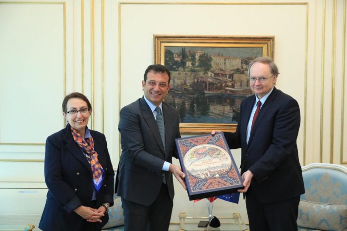 İBB Başkanı Ekrem İmamoğlu, AB Türkiye Delegasyonu Başkanı Christian Berger’in veda ziyareti öncesinde, Birleşmiş Milletler Tarım ve Gıda Örgütü (FAO) Türkiye Temsilcisi Viorel Gutu ile bir araya geldi. İBB olarak önceliklerinin İstanbulluları sağlıklı gıdaya ulaştırmak olduğunun altını çizen İmamoğlu, “Bu bizim en önemli politikalarımızdan bir tanesi. Covid-19 pandemisi ile birlikte tüm dikkatlerimiz sağlığa dönmüşken insanların direk sağlığını etkileyen sağlıklı gıdaya ulaşmaları konusunda çok ciddi motivasyona sahibiz. Kararlı adımlar atmaktan da çekinmeyeceğiz” diye konuştu.