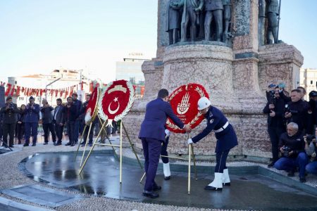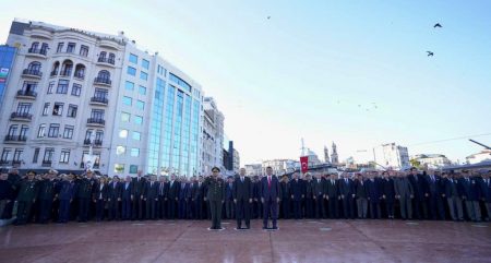 Türkiye Cumhuriyeti’nin kurucusu, ulu önder Mustafa Kemal Atatürk, ölümünün 84’üncü yıldönümünde, Taksim Cumhuriyet Anıtı’nda düzenlenen resmi törenle anıldı. Atatürk için düzenlenen tören; İstanbul Valisi Ali Yerlikaya, 1. Ordu ve İstanbul Garnizon Komutanı Orgeneral Ali Sivri ile İstanbul Büyükşehir Belediye (İBB) Başkanı Ekrem İmamoğlu’nun, kurumları adına Cumhuriyet Anıtı’na çelenk koymalarıyla başladı. CHP İstanbul İl Başkanı Canan Kaftancıoğlu ve İYİ Parti İstanbul İl Başkanı Buğra Kavuncu da partileri adına anıta çelenk bıraktı. Barolar, siyasi partiler ve çeşitli sivil toplum kuruluşları da anıta sırasıyla çelenk koydu. Çelenk merasiminin ardından; Mustafa Kemal Atatürk, silah arkadaşları ve tüm şehitler için 2 dakikalık saygı duruşunda bulunuldu. Tören, İstiklal Marşı’nın okunmasıyla son buldu.