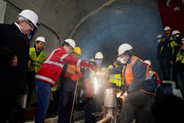İBB Başkanı Ekrem İmamoğlu, Kabataş-Mecidiyeköy metro hattı arasındaki son rayların kaynatma işlemini, TBMM CHP Grup Başkan Vekili Engin Altay İYİ Parti Grup Başkanvekili Müsavat Dervişoğlu tanıklığında gerçekleştirdi. “Bütün bu ulaşım aksiyonları, İstanbul’un yoğunlaşan nüfusuna çözüm bulma gayreti” diyen İmamoğlu, kenti bekleyen en büyük sorunlardan birinin “Kanal İstanbul” olduğuna vurgu yaptı. Kanal İstanbul’un, şehir ve ülke için büyük bir tehdit olduğuna dikkat çeken İmamoğlu, “İstanbul’a bugün var olan ulaşım aksları; yani caddesi, sokağı vesairesine yüzde 20 daha artı bir yük getirecek. Su ihtiyacından, kanalizasyon ihtiyacından vesairesine kadar, 2-2,5 milyonluk bir kent… Ki hiçbir zaman bu tür tasarımlar, çizildiği hatta kalmaz. O bir virüs gibi devam eder” dedi. Hattın birinci etabı olan 18 kilometrelik, 15 istasyonlu bölümü, 28 Ekim 2020’de işletmeye alındı. İşletmeye alındığı günden bu yana, aylık ortalama yüzde 99,94 servis elverişliliği performansına ulaşan hatta, 137.326 başarılı sefer gerçekleştirilip, toplam 32 milyon yolcuya hizmet verildi.