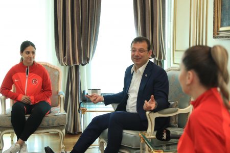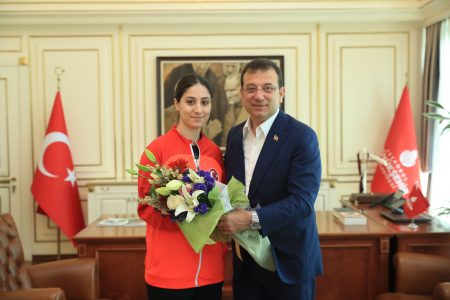 İstanbul Büyükşehir Belediye (İBB) Başkanı Ekrem İmamoğlu, Gaziantep’in Şahinbey ilçesinde 25-29 Mayıs 2022 tarihleri arasında arasında düzenlenen 57’nci Avrupa Karate Şampiyonası’nda 4 altın madalya kazanan İBB Spor Kulübü’nün (İBBSK) şampiyon sporcularını ağırladı. İmamoğlu’nun Saraçhane ana yerleşkesindeki makam odasında gerçekleştirilen buluşmaya; şampiyon sporcular Serap Özçelik Arapoğlu, Eda Eltemur, Erman Eltemur ve Burak Uygur katıldı. İBBSK Başkanı Fatih Keleş, Genel Sekreter Erdem Aslanoğlu ve Karate A Takım Koordinatörü Yaser Şahintekin de şampiyon sporculara eşlik etti.