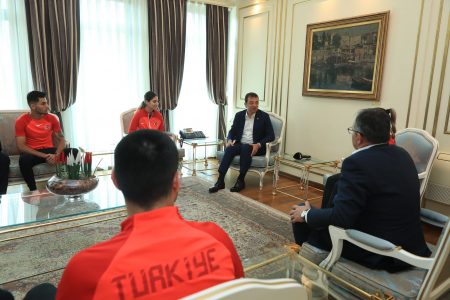 Türk Milli Takımı’nın Avrupa Şampiyonası’nda toplam 7 altın madalya kazandığını aktaran Keleş de İmamoğlu’yla, “4’ü sporcularımız tarafından kazanıldı. Sakat arkadaşlarımız da vardı turnuvaya gidemeyen. Onlar olsaydı, biraz daha belki bu dereceler artabilirdi. Çok güzel bir hafta sonu geçirdik. 4 final yaptı sporcu arkadaşlarımız, dördü de finali kazandılar; Avrupa Şampiyonu oldular. Daha önce bunu yaşayanlar var tabii aramızda ama ilk defa Avrupa Şampiyonu olan arkadaşlarımız da var,” bilgilerini paylaştı.