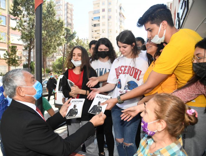 Başkan Zeydan Karalar, açılışı takip eden gençlere Gençler İçin Atatürk kitabını hediye etti.