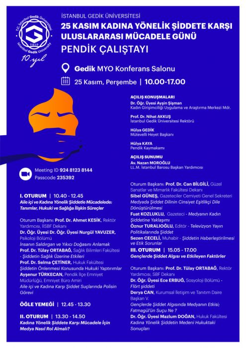 25 KASIM KADINA YÖNELİK ŞİDDETE KARŞI ULUSLARARASI MÜCADELE GÜNÜ PENDİK ÇALIŞTAYI