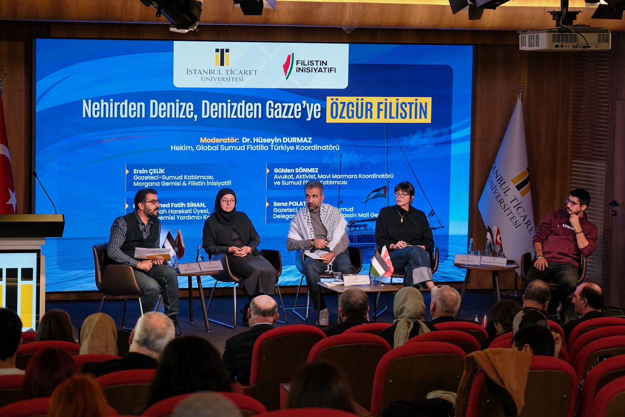 İstanbul Ticaret Üniversitesi Ahî Çelebi Kampüsü, yeniden inşa edilmesi ve hizmete girmesinin ardından anlamlı bir buluşmaya ev sahipliği yaptı. Filistin’in de ilk ticaret odası olan İstanbul Ticaret Odası’nın tarihî binasında düzenlenen ilk etkinlik Küresel Sumud Filosu aktivistlerinin katıldığı “Nehirden Denize, Denizden Gazze’ye: Özgür Filistin” paneli oldu. Panelistler, 7 Ekim tarihinin dünya ve insanlık vicdanı için bir kırılma noktası olduğunu vurguladı.