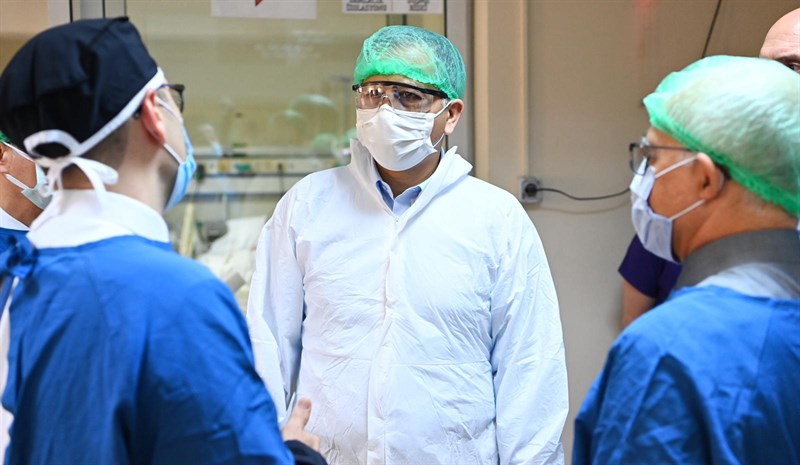 Vali Yerlikaya, istişarelerin ardından Covid-19 ile mücadelede önemli çalışmalar yürüten ve BBC, CNN gibi dünya televizyonlarına da konuk olan Fakülte Hastanesi’nin Covid-19 Yoğun Bakım Servisi’ni ziyaret ederek bilgi aldı. AHA.