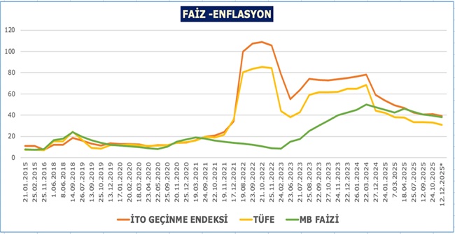 İşte dananın kuyruğu da burada kopuyor. Çünkü TÜİK TÜFE verisine piyasa güven duymuyor. Düşük kaldığı kanaati yaygındır. TÜFE yerine daha güvenilir bulunan İTO geçinme endeksini alırsak, 2025 yıl sonu enflasyon oranı yüzde 39 ‘dur ve yine eksi reel faiz oluştu demektir.