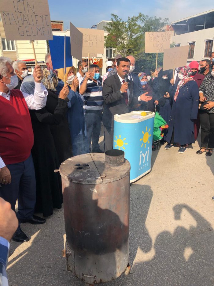 Girişi olan ancak çıkışı olmayan Şirinevler 11 Eylül Caddesi’nde halkla birlikte soba yakarak eylem yapan İYİ Parti İl Başkanı Selçuk Türkoğlu’nun açıklaması şöyle: