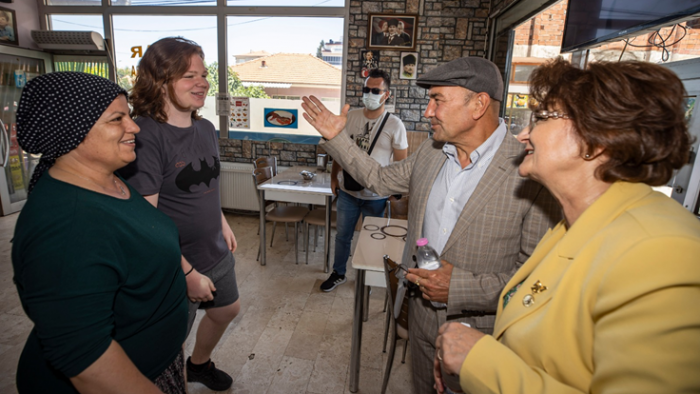Başkan Soyer’e Bozkurt ziyaretinde eşi Neptün Soyer, CHP Denizli İl Başkanı Bülent Nuri Çavuşoğlu, il ve ilçe yöneticileriyle vatandaşlar da eşlik etti. Büyük bir sevgi seliyle karşılaşan Başkan Soyer, esnafı ziyaret etti, Bozkurt ilçesinin üreten kadınlarıyla bir araya geldi. AHA.