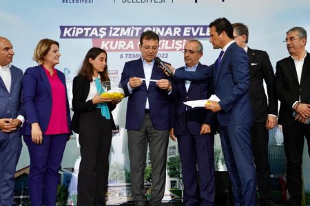 İBB iştiraki KİPTAŞ ve İzmit Belediyesi’nin 18 ay önce başlayan işbirliği meyvesini verdi. KİPTAŞ’ın yapımını tamamladığı 4 bloktaki, 143 konut ve 5 ticari birim için düzenlenen ‘Anahtar Teslim Töreni’; CHP TBMM Başkanvekili Haydar Akar, İBB Başkanı Ekrem İmamoğlu ve İzmit Belediye Başkanı Fatma Kaplan Hürriyet’in katılımlarıyla gerçekleştirildi. Akar, “11 büyükşehir belediyemizin ve ilçe belediyelerimizin, il belediyelerimizin güzel örneklerine şahit oluyoruz” ifadelerini kullanırken, İmamoğlu, talep gelen her yerde iş ürettiklerinin altını çizdi. KİPTAŞ’ın kendi dönemlerinde, inşaat sektöründe faaliyet gösteren ilk 500 firma arasındaki listede 7 sıra yükselerek, 11’nci sıraya yerleştiği bilgisini paylaşan İmamoğlu, “KİPTAŞ, İstanbullunun malı, milletin malı. Bütün üretimlerimiz halk lehine” dedi.