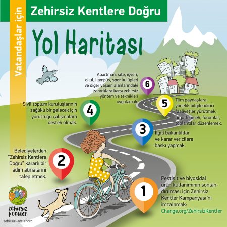 Zehirsiz Sofralar Platformu tarafından başlatılan Zehirsiz Kentler Kampanyası (Change.org/ZehirsizKentler) ile, belediyelerden zehirsiz kent olma yolunda kararlı bir adım atarak; en geç 2025 yılına kadar herbisit kullanımının tamamen sonlandırılmasına, 2030 yılına kadar diğer tüm pestisit ve biyosidal ürün kullanımının %50 azaltılmasına ve 2040 yılına kadar da tüm bu ürünlerin kullanımının tamamen sonlandırılmasına dair ‘İyi Niyet Belgesi’ imzalamaları ve bu kapsamda katılımcı bir stratejik eylem planı oluşturmaları talep ediliyor.