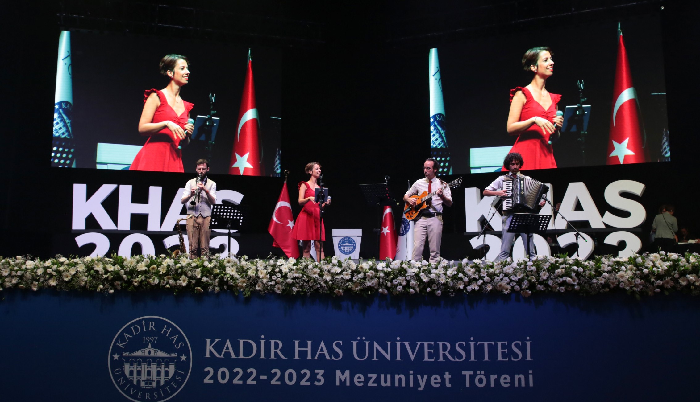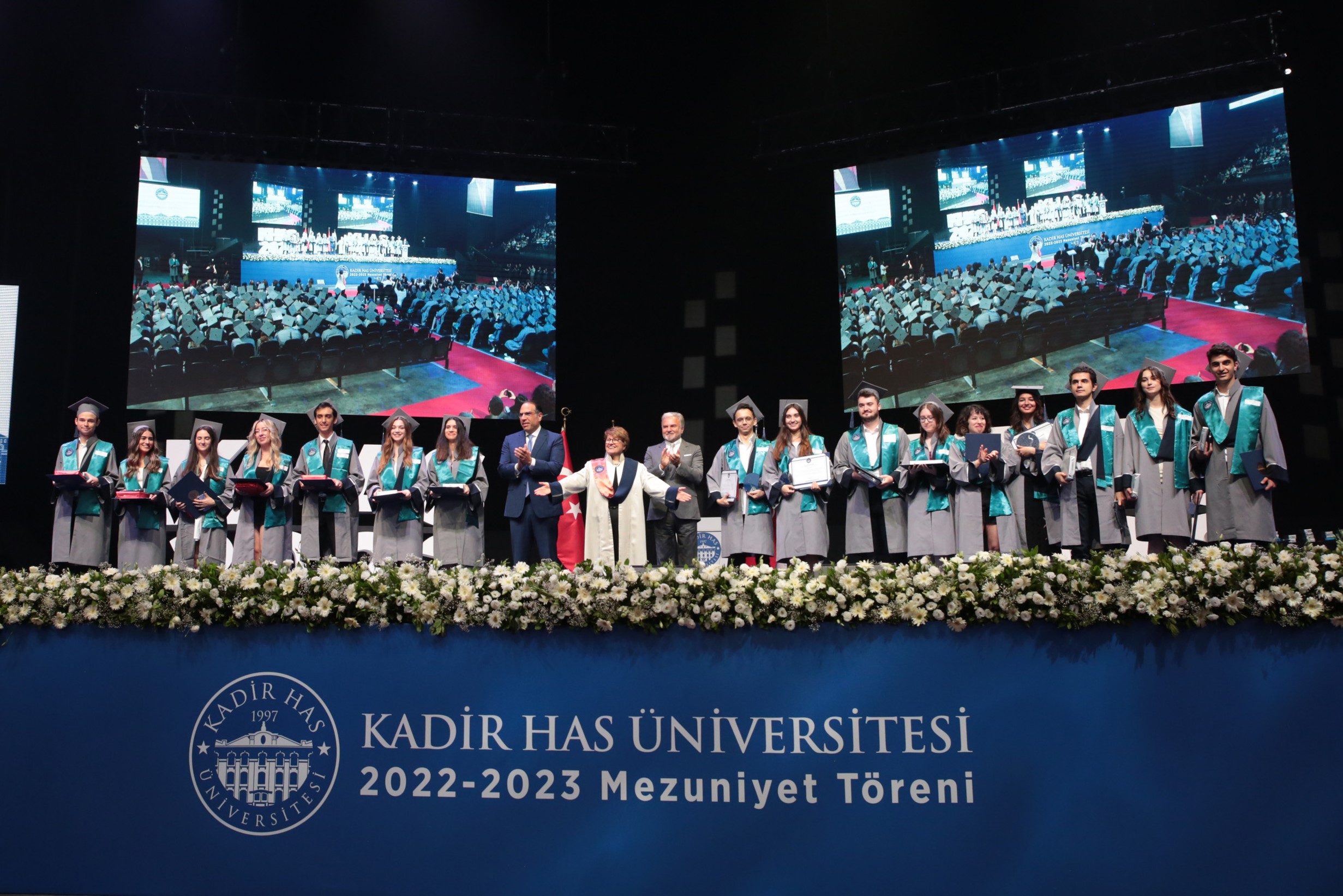 2023 mezunlarımız muhteşem bir tören için Volkswagen Arena’da arkadaşları, aileleri ve akademisyenlerimizle bir araya geldiler. Törenin açılış konuşmalarını Kadir Has Üniversitesi Mütevelli Heyeti Başkanı Nuri Has, Kadir Has Vakfı Başkanı Can Has ve Kadir Has Üniversitesi Rektörü Prof. Dr. Sondan Durukanoğlu Feyiz yaptı. Törene katılamayanlar da Kadir Has Üniversitesi’nin YouTube kanalından yapılan canlı yayın ile gençlerimizin mezuniyet heyecanına ortak oldular. Törende mini bir konser veren Manuş-u Âlâ grubu da şarkılarıyla hem mezunlarımıza hem de konuklarımıza keyifli anlar yaşattı.