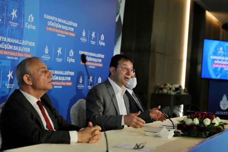 İmamoğlu’ndan “simsar” uyarısı: “Bu işten fayda üretmek isteyen bir avuç insanı muhatap almayın” Küçükçekmece Belediyesi ile İBB iştiraki KİPTAŞ arasında, Kanarya Mahallesi’nde gerçekleştirilmesi planlanan kentsel dönüşüm projesiyle ilgili protokol imzalandı.
