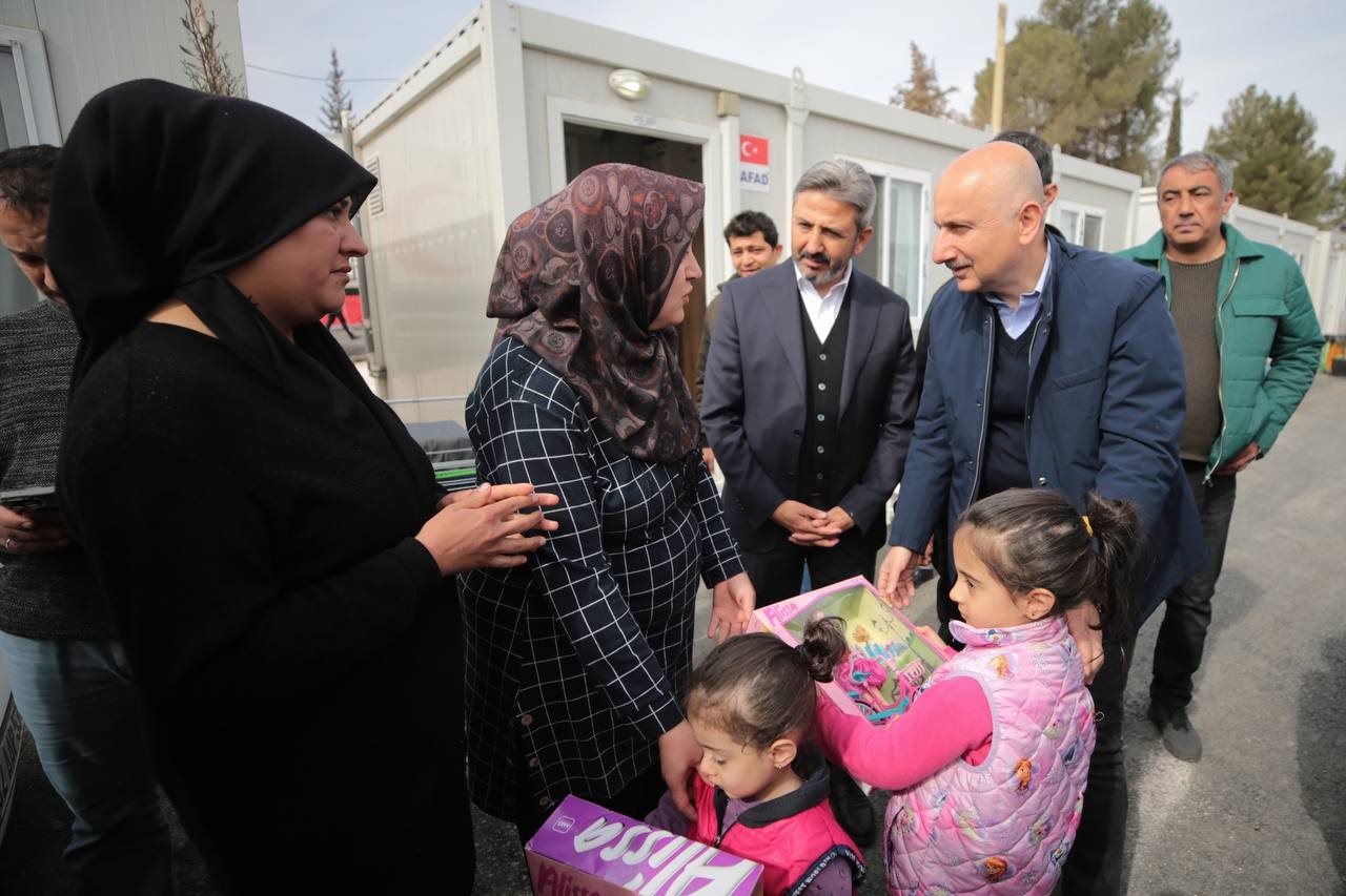 Ulaştırma Bakanı Karaismailoğlu, Bakanlıktaki çalışma arkadaşlarıyla birlikte depremin ilk saatlerinde Adıyaman’a geldiklerini belirterek, diğer illerde olduğu gibi kesintisiz çalışmalarla Adıyaman’da bir yandan geçici toplu yaşam alanlarını tesis ettiklerini söyledi.