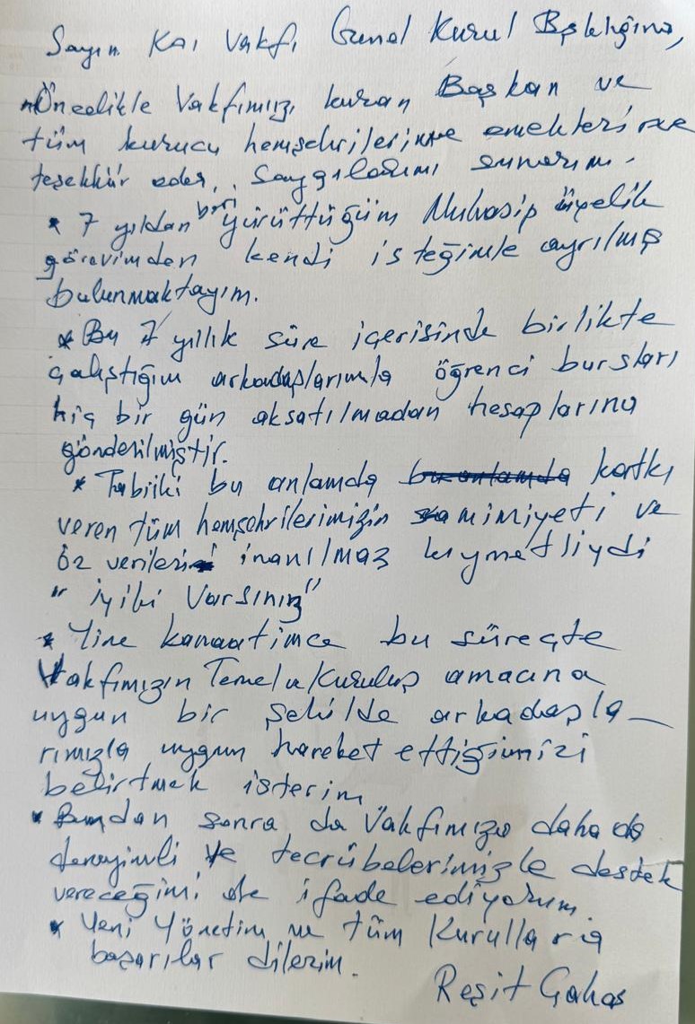 Yeni başkana ve Yönetim Kuruluna başarılar diliyor; tüm katılımcıları saygı ve sevgiyle selamlıyorum. Kalın sağlıcakla”