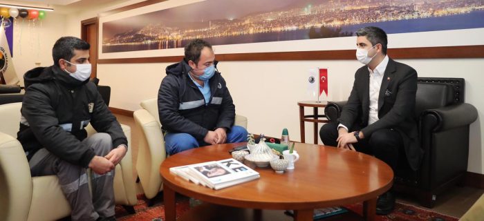 Yaşananların ardından Kartal Belediye Başkanı Gökhan Yüksel, işçileri makamında kabul etti. Sergiledikleri örnek davranış için çalışanlarına teşekkür eden Başkan Yüksel, sağduyulu yaklaşımlarından dolayı kendilerini ödüllendirdi. Personelin; yaşlı bir insanın zor hayat şartlarına rağmen geçimini sağladığı parayı bularak geri vermesinin herkes için iyi örnek ve güzel bir davranış olduğunu, bu davranışın kendilerini onurlandırdığının altını çizen Başkan Gökhan Yüksel: “Bu örnek davranışınız bizim için kıymetli. Zaten yaşam koşulları zor. O teyzenin her şeyiydi o emekli maaşı. Bizi aradı ve teşekkürlerini iletti bizzat. 80 yaşındaki teyzemizi biz de buraya davet edemedik tabii Covid nedeniyle; ama biz onun teşekkürlerini size iletmiş olalım. İnsanlık hala iyi olmaya devam edecek, iyi olanlar kazanacak, iyi insanlar örnek olmaya devam edecek. Bu anlamda ben size teşekkür ediyorum. Orada yanınızda olan diğer çalışma arkadaşlarınıza da teşekkür ediyorum. İyi ki böyle örnek ve güzel bir tavrı sergilediniz, yoksa onun bu ayki yaşamı yaşantısı çok çok büyük sıkıntıya girmiş olacaktı. Bir de Kartal Belediyesi ailesi olarak bizi onurlandırdınız. Yaşam öyle bir hale geldi ki; bu yaptığınız doğal, doğru, düzgün davranış bile çok kıymetli. Bunların sayısını artırmak hepimizin görevi. Bizi mutlu ettiniz. Teyzenin teşekkürlerini ben de bizzat size iletmek için ben de çalışma arkadaşlarıma – arkadaşları davet edin – dedim. İyi ki varsınız. Böyle örnek olmaya devam edelim olur mu? İyilik yapanlar, iyi düşünenler, güzel işler yapanların sayısı arttıkça bir bakmışsınız ki her yeri güzelleştirmişiz. Çok çok teşekkür ederim sizlere.” dedi.