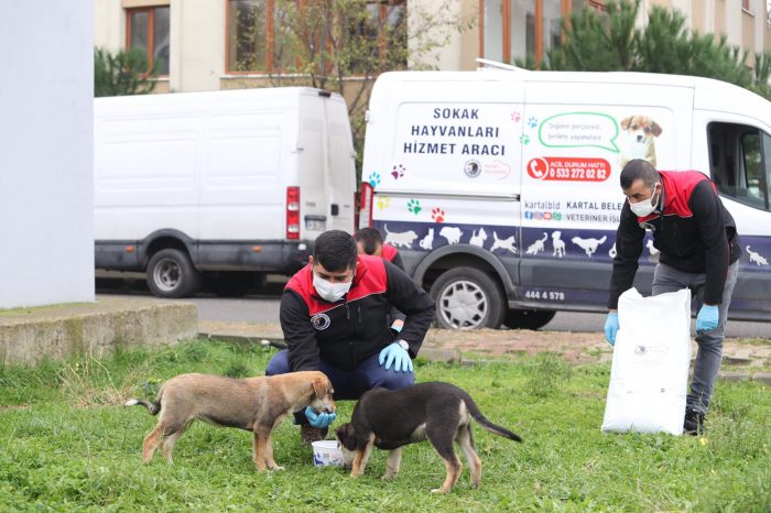 Kartal Belediyesi, İçişleri Bakanlığı’nın ‘Sokağa Çıkma Kısıtlamaları’ konulu genelgesi ile birlikte mama ve su bulmakta zorluk çeken sokak hayvanları için besleme çalışmalarını ilçe genelinde yoğunlaştırdı.
