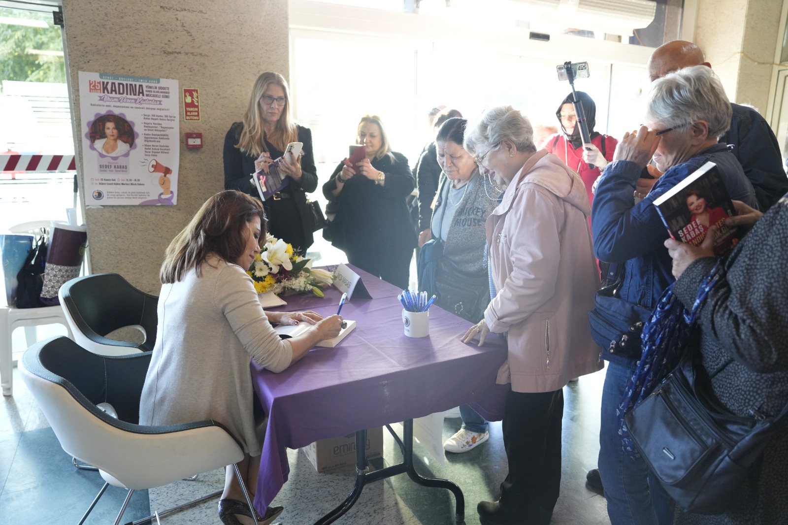 Etkinliğin ana konuşmacısı gazeteci–yazar Sedef Kabaş, konuşmasında özellikle ‘Suskunluk Sarmalı’ kavramına dikkat çekerek, şiddetin sessizlikle büyüdüğünü söyledi. “Suskunluk şiddeti çoğaltır. Konuştukça, itiraz ettikçe, hakkımızı savundukça korku iklimi dağılır. Hak verilmez, alınır.” diyerek kadınlara cesaret çağrısı yaptı. Kabaş ayrıca, bir toplumu şiddetten korumanın en önemli yolunun birey olabilmek, özgüven sahibi olmak ve kendine saygı duymak olduğunu vurguladı. Kız çocuklarının mutlaka okuması gerektiğini belirtirken, Prof. Dr. Türkan Saylan’ın “Bir kız çocuğunu okutmak bir ülkeyi kurtarmaktır” anlayışına atıfta bulunarak bu düşüncenin önemini hatırlattı. Konuşmasının ardından Sedef Kabaş’ın kitapları için imza günü düzenlendi. Katılımcılar Kabaş ile birebir sohbet ederek kitaplarını imzalattı.