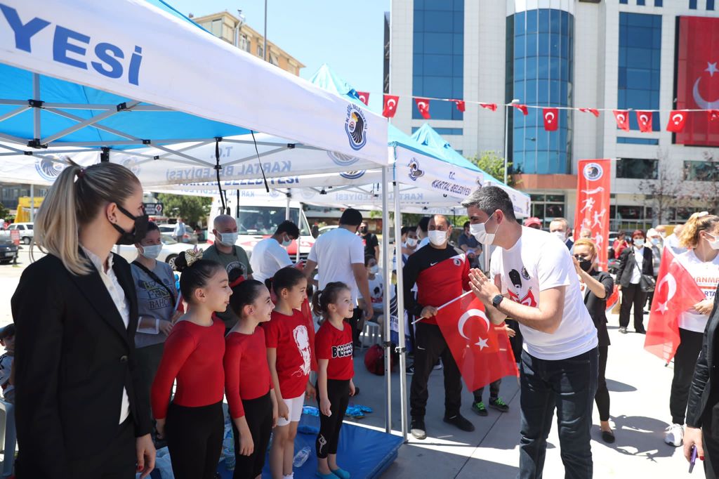 Amatör spor kulüpleri tarafından gerçekleştirilen 19 Mayıs gösteri maçları Kartal Meydan’da adeta bir görsel şölene dönüştü. COVID-19 pandemisi nedeniyle alınan tedbirler eşliğinde amatör sporcuların katılımıyla gösteri maçları düzenlendi. Beş amatör spor kulübünün katıldığı spor etkinliklerinde; masa tenisi, jimnastik, satranç, karate, boks ve voleybol takımlarının gösteri maçları yapıldı. 19 Mayıs Atatürk’ü Anma, Gençlik ve Spor Bayramı kutlamaları ilçede vatandaşlara unutulmaz bir gün yaşattı.