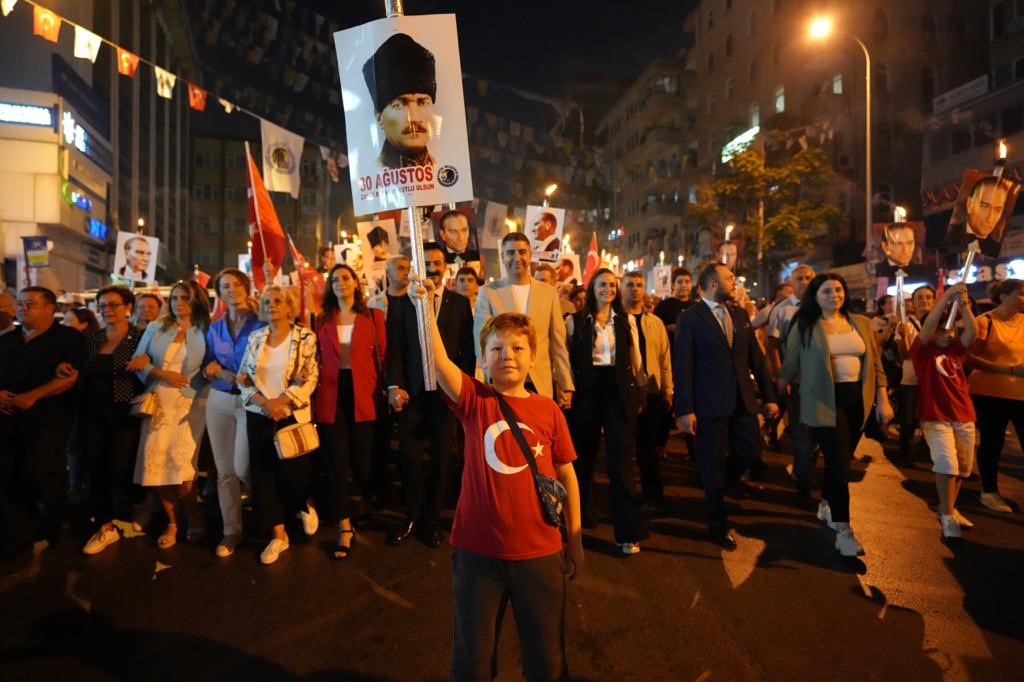 30 Ağustos 1922’de Gazi Mustafa Kemal Atatürk’ün başkomutanlığında zaferle sonuçlanan ve bu yıl 101’incisi kutlanan Zafer Bayramı kutlamaları kapsamında, günün ilk etkinliği binlerce kişinin katıldığı fener alayı oldu.