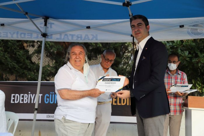 Etkinliğin sonunda söyleşiye katılan usta kalemlere Kartal Belediye Başkanı Gökhan Yüksel tarafından günün anısına teşekkür belgesi takdim edildi.