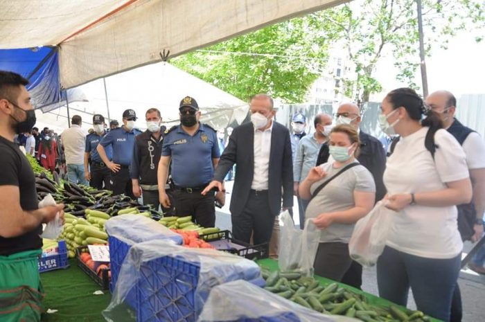 Hürriyet Mahallesi ve Uğur Mumcu semt pazarlarında gerçekleşen denetimlerde pazar esnafının HES kodları kontrol edilirken, tezgâhlar arası mesafe bırakılması, ürünlerin elle seçilmemesi, maske ve eldiven kullanılması gerektiği konularında da gerekli uyarılar yapıldı.