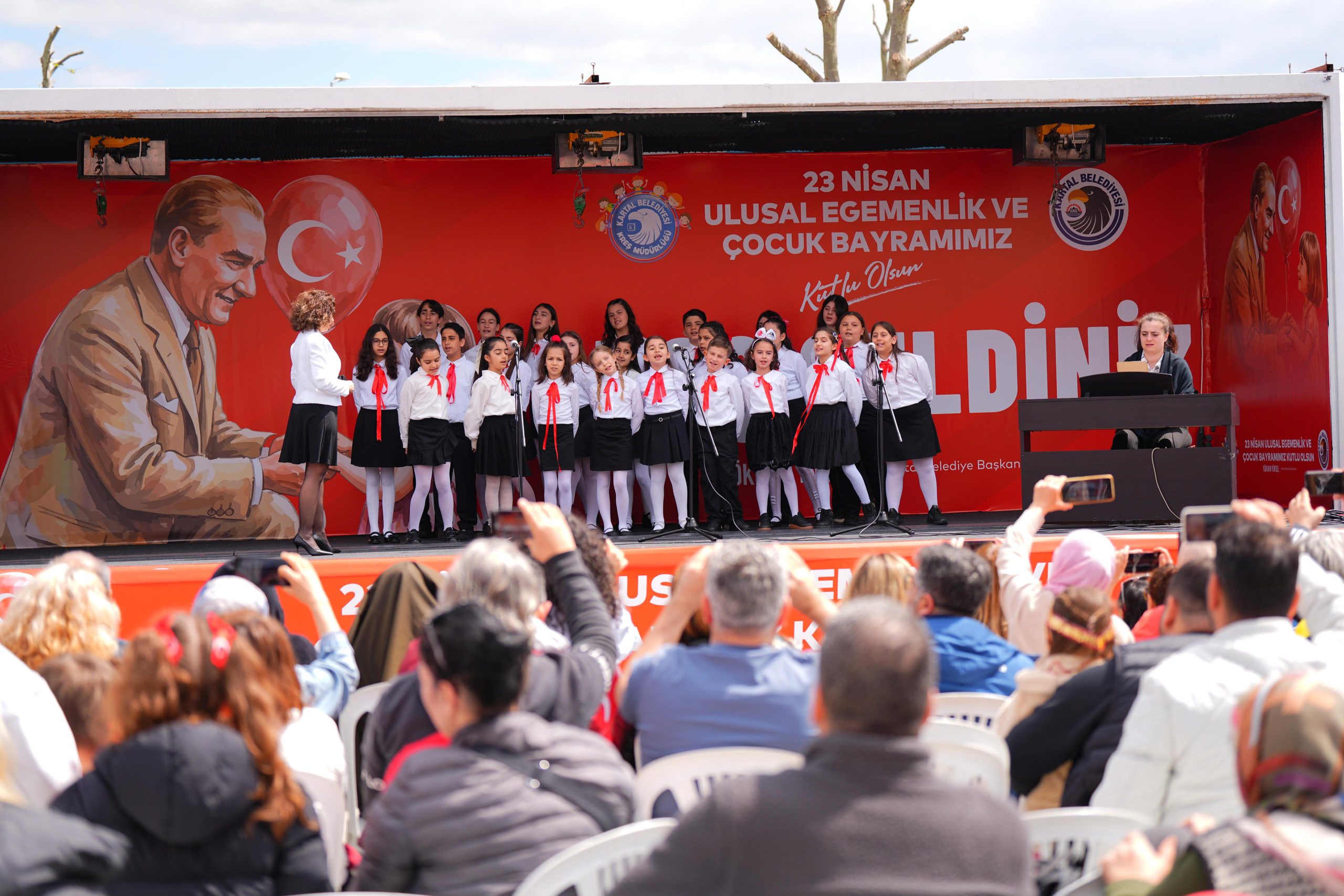 Türkiye Büyük Millet Meclisi’nin açılışının 106. yıl dönümü ve 23 Nisan Ulusal Egemenlik ve Çocuk Bayramı, Kartal’da bu yıl adeta masalsı bir şölene dönüştü. Kartal Belediyesi tarafından düzenlenen görkemli etkinlikler, milli egemenliğin simgesi olan bu anlamlı günü bayraklar ve çocukların neşesiyle taçlandırırken; kentin meydanları sevinç, umut ve Cumhuriyet ruhuyla yankılandı. Kutlamalarda çocuklarla bir araya gelen Kartal Belediye Başkanı Gökhan Yüksel, “Gazi Mustafa Kemal Atatürk’ün çocuklarımıza emanet ettiği bağımsızlık meşalesini, Kartallı çocuklarımızın gözlerindeki ışıltıyla yarınlara gururla taşıyoruz” dedi.