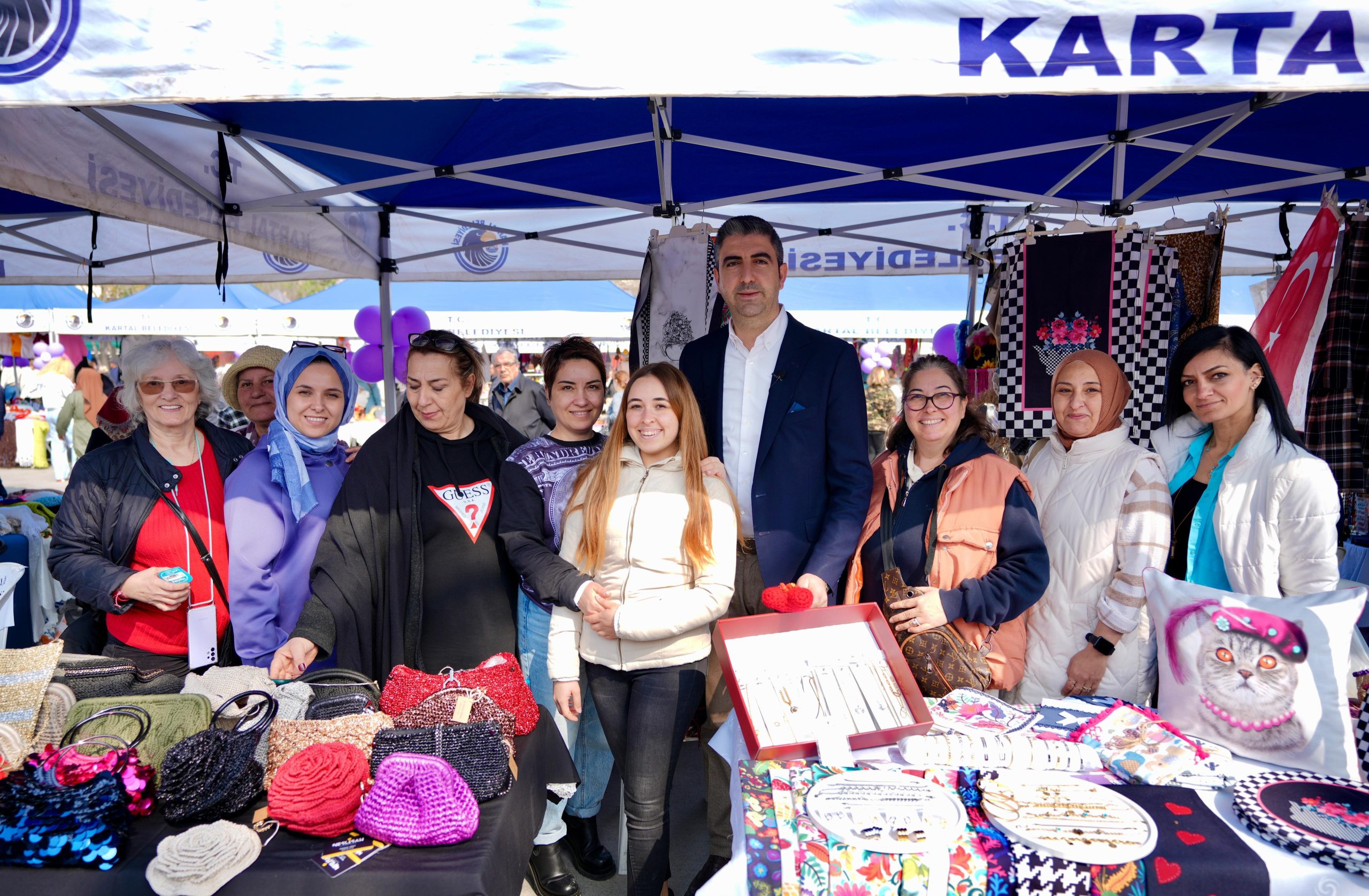 8 Mart Dünya Kadınlar Günü Kutlamaları, Kartal Meydanı’nda binlerce kadının katıldığı kortej yürüyüşü ile başladı. Kadınlar, yürüyüş boyunca bando takımı ve hazırladıkları pankartlar eşliğinde, Ankara Caddesi üzerinden Kartal Meydanı’na kadar yürüdü. Kartal Meydanı’nda kurulan sahnede konser ve tiyatral gösteriler ile kutlamalar devam etti. Alana gelen Kartal Belediye Başkanı Gökhan Yüksel, meydanda kurulan Kadın El Emeği Pazarı’nı gezerek, Kartallı kadınlar ile bir araya geldi. Kartallı kadınlar, Başkan Gökhan Yüksel ile sohbet ederek fotoğraf çektirdi.