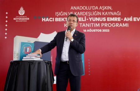 Kılıçdaroğlu’nun ilçeye ulaşmasından önce de İBB Yayınları tarafından yayınlanan ve Hacı Bektaş-ı Veli, Yunus Emre ile Ahi Evran’ı anlatan toplam 4 kitabın tanıtımı yapıldı. İBB Başkanı İmamoğlu, Hacıbektaş Belediyesi önündeki ilçe meydanına kurulan standa; “Hacı Bektaş Veli; Hayatı ve Dönemi Üzerine Metinler”, “Fütüvvet ve Fütüvvetname; Makaleler” (Abdülbaki Gölpınarlı), Fütüvvetname-i Bektaşiye” ve “A/Z Yunus Emre” (Talat Sait Halman) isimli kitapları, kalabalık bir vatandaş topluluğu önünde tanıttı. 2021’in UNESCO tarafından Hacı Bektaş-ı Veli’yi, Ahi Evran’ı ve Yunus Emre’yi anma yıldönümü olarak belirlendiğini hatırlatan İmamoğlu, şunları söyledi:
